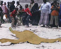 Almost as old as the medium of photography is the photographic motive to show people posing with their killed counterparts. It almost seems like collecting a trophy, when people pose that way for the camera. This is by far not limited to foreign cultures or people, nor does it seem to be limited to a certain level of education. Rather it unites most cultures and social groups. Probably even amongst the visitors to this show, would be some who could not resist the urge to pose for such an image.