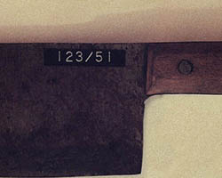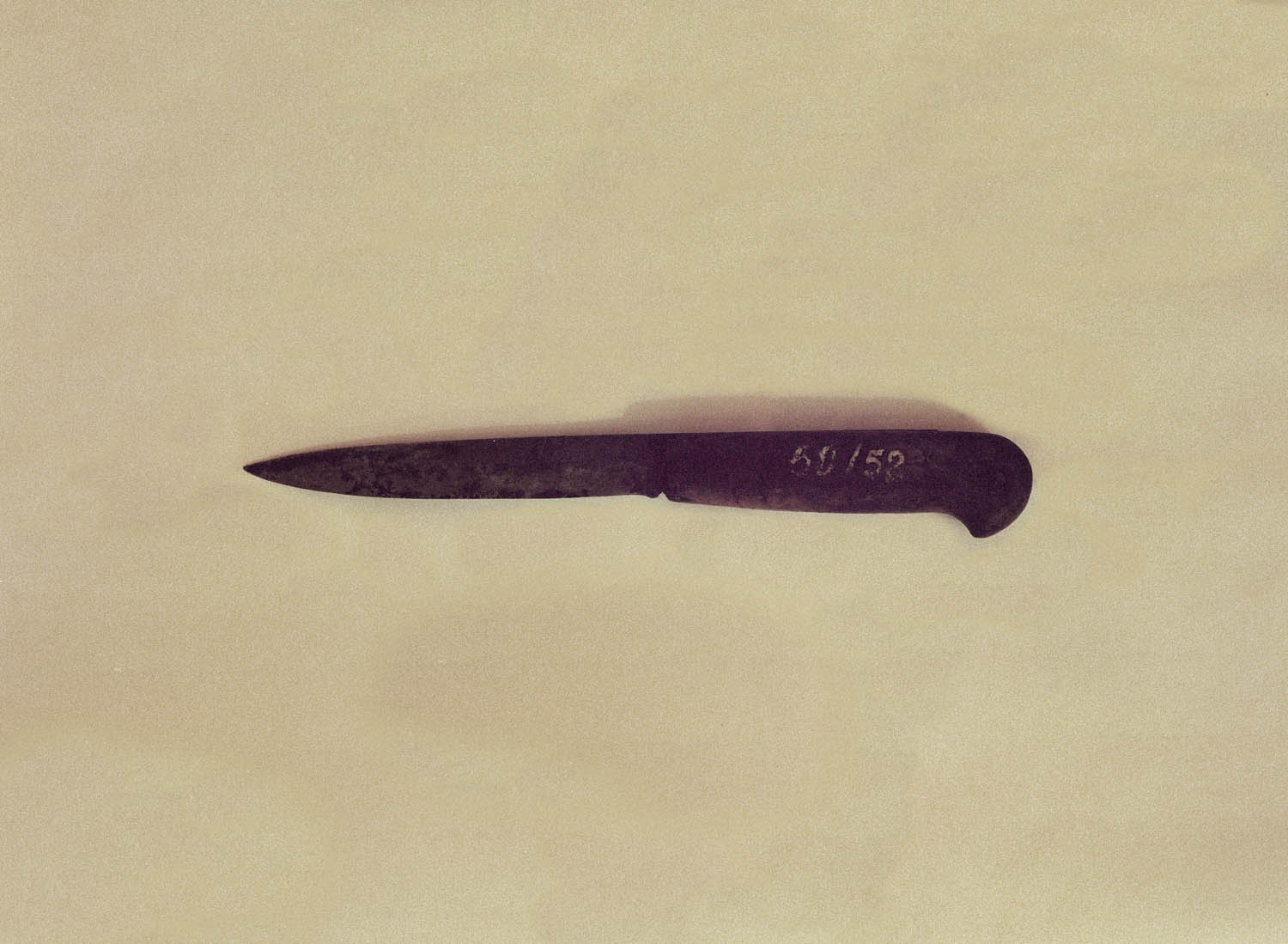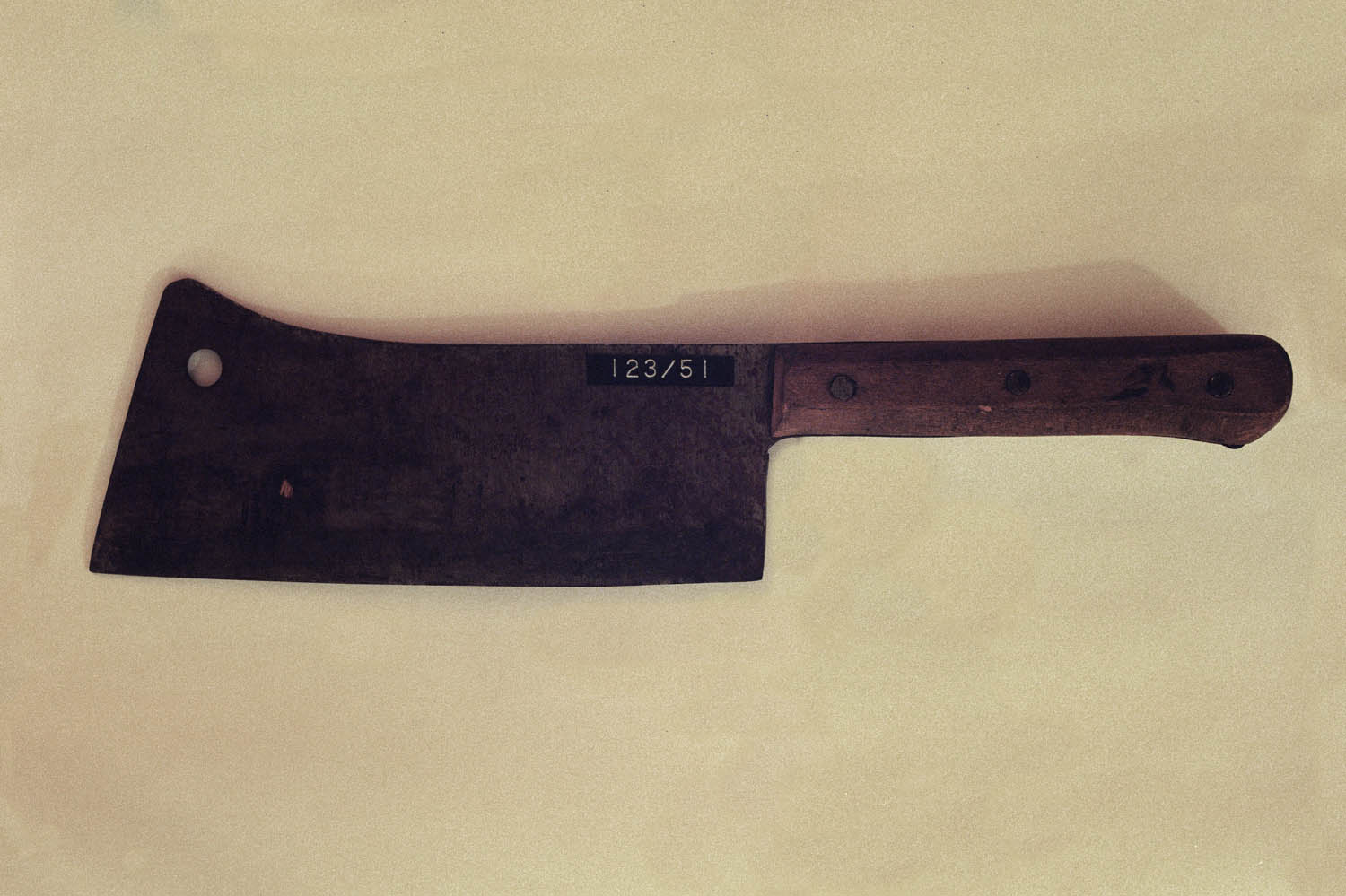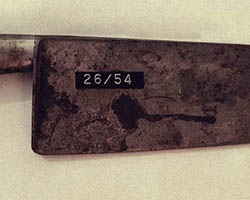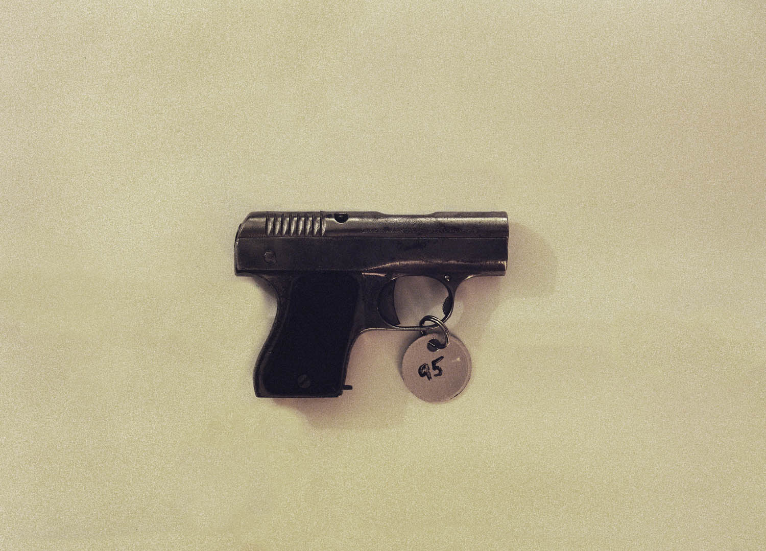 The images of this project all show weapons that have been used to murder people. It is interesting how much these images change as soon as the viewer recognizes that there is a story underneath the surface of the image. Without knowing this, these images show nothing more than knifes and guns.