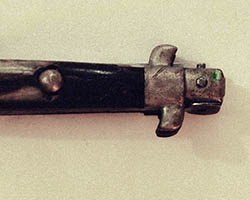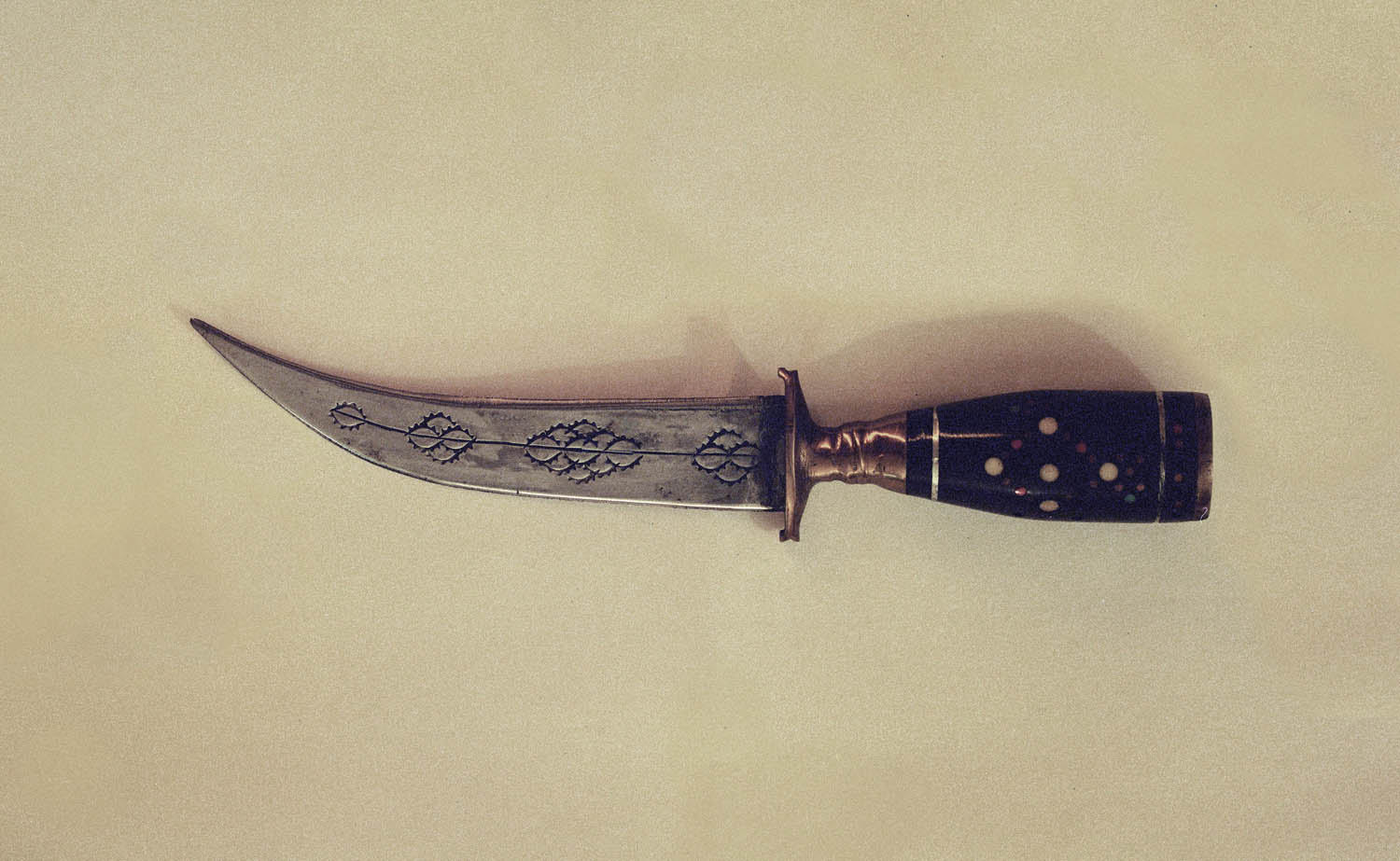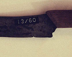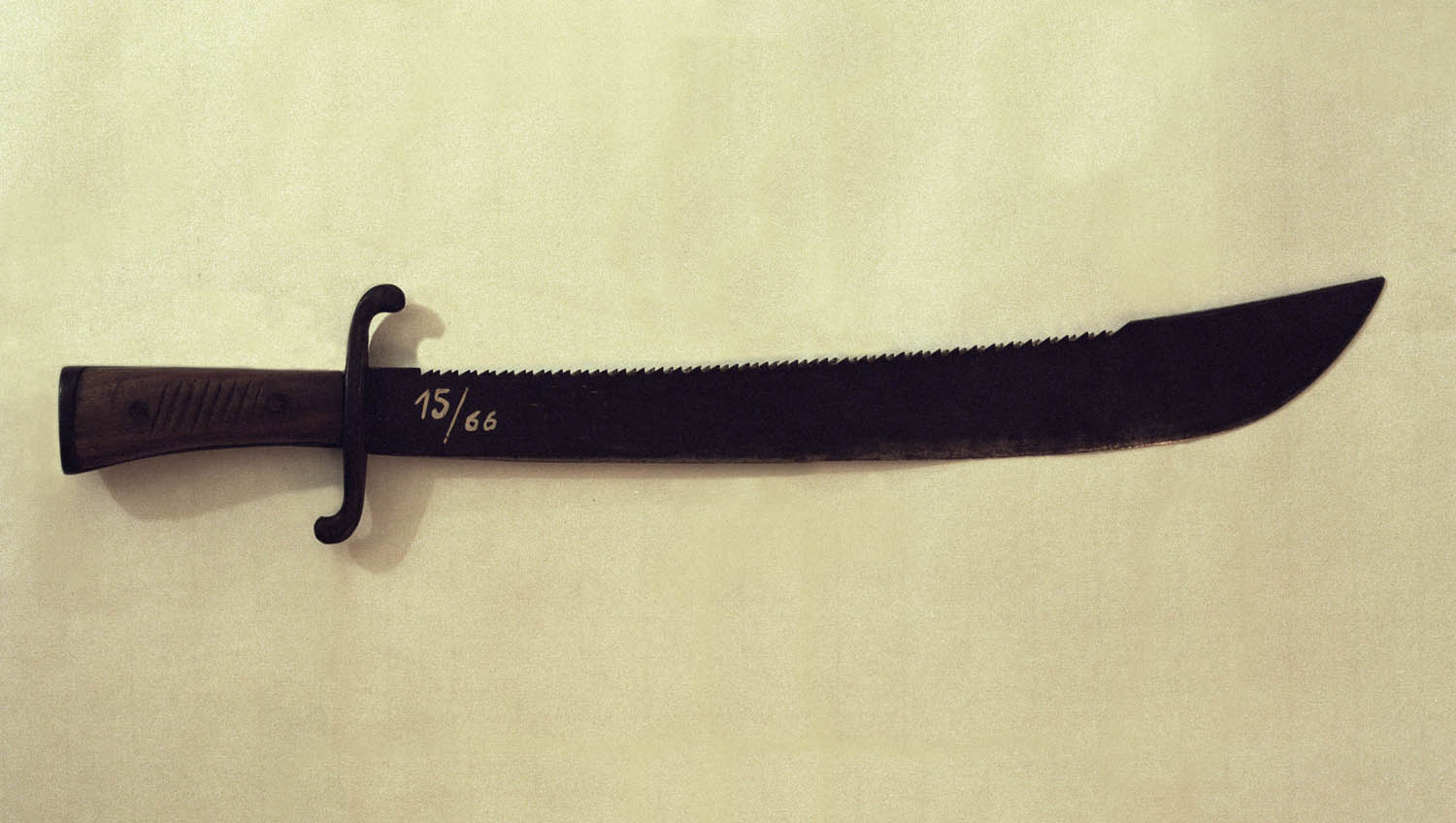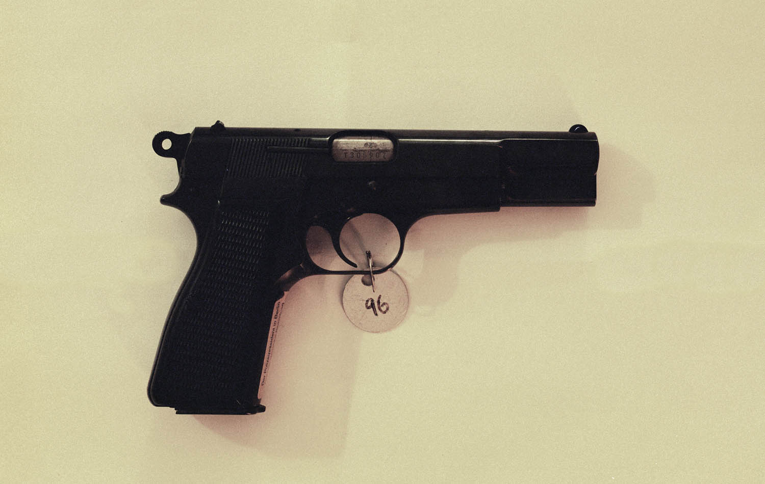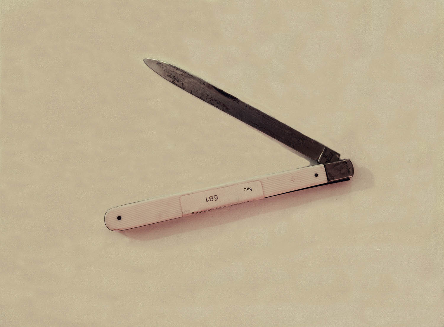 The images of this project all show weapons that have been used to murder people. It is interesting how much these images change as soon as the viewer recognizes that there is a story underneath the surface of the image. Without knowing this, these images show nothing more than knifes and guns.