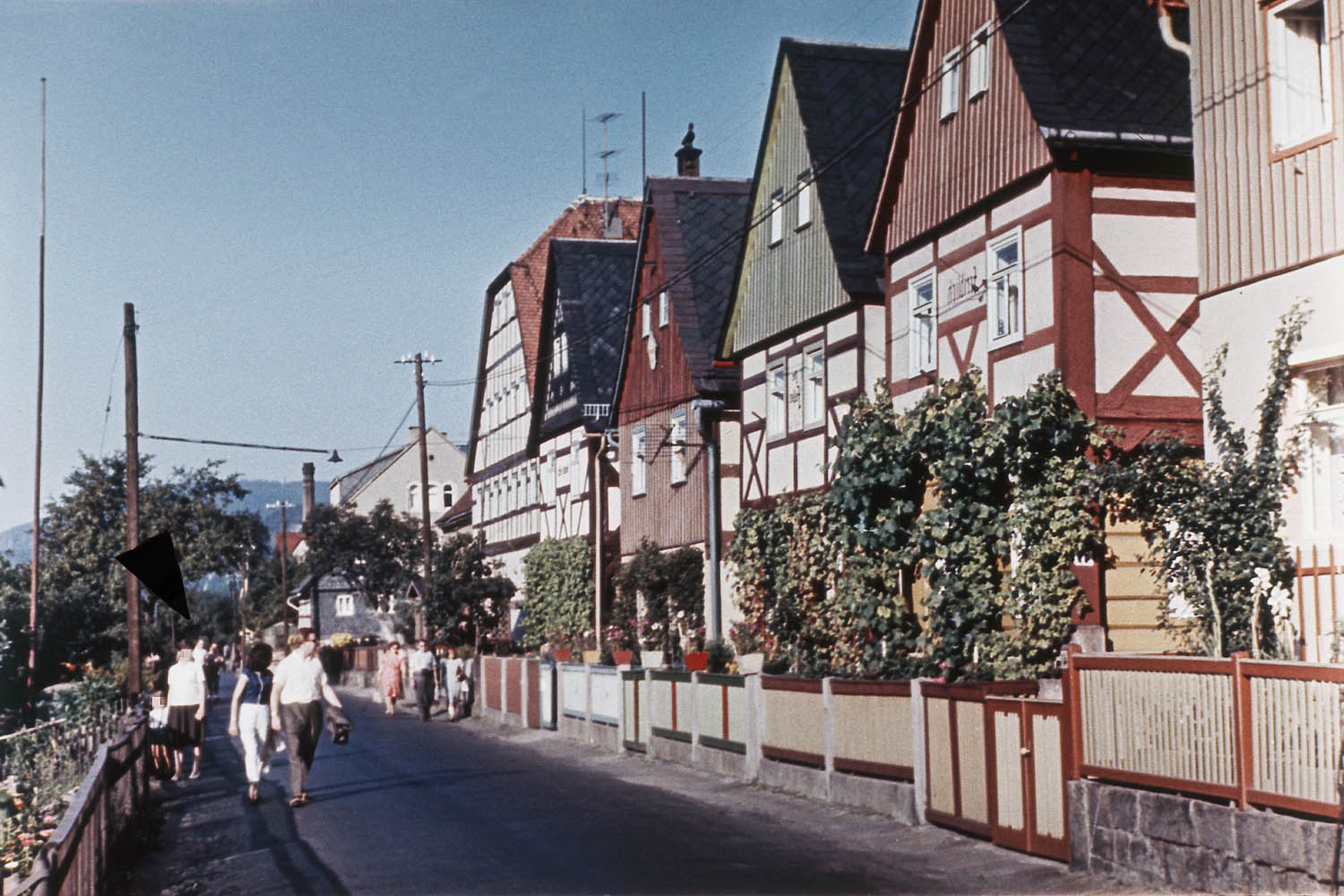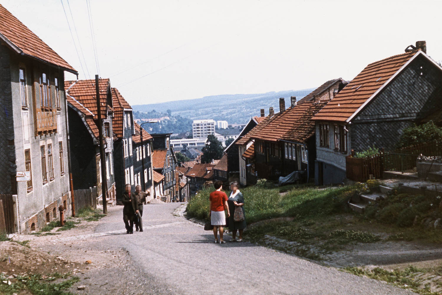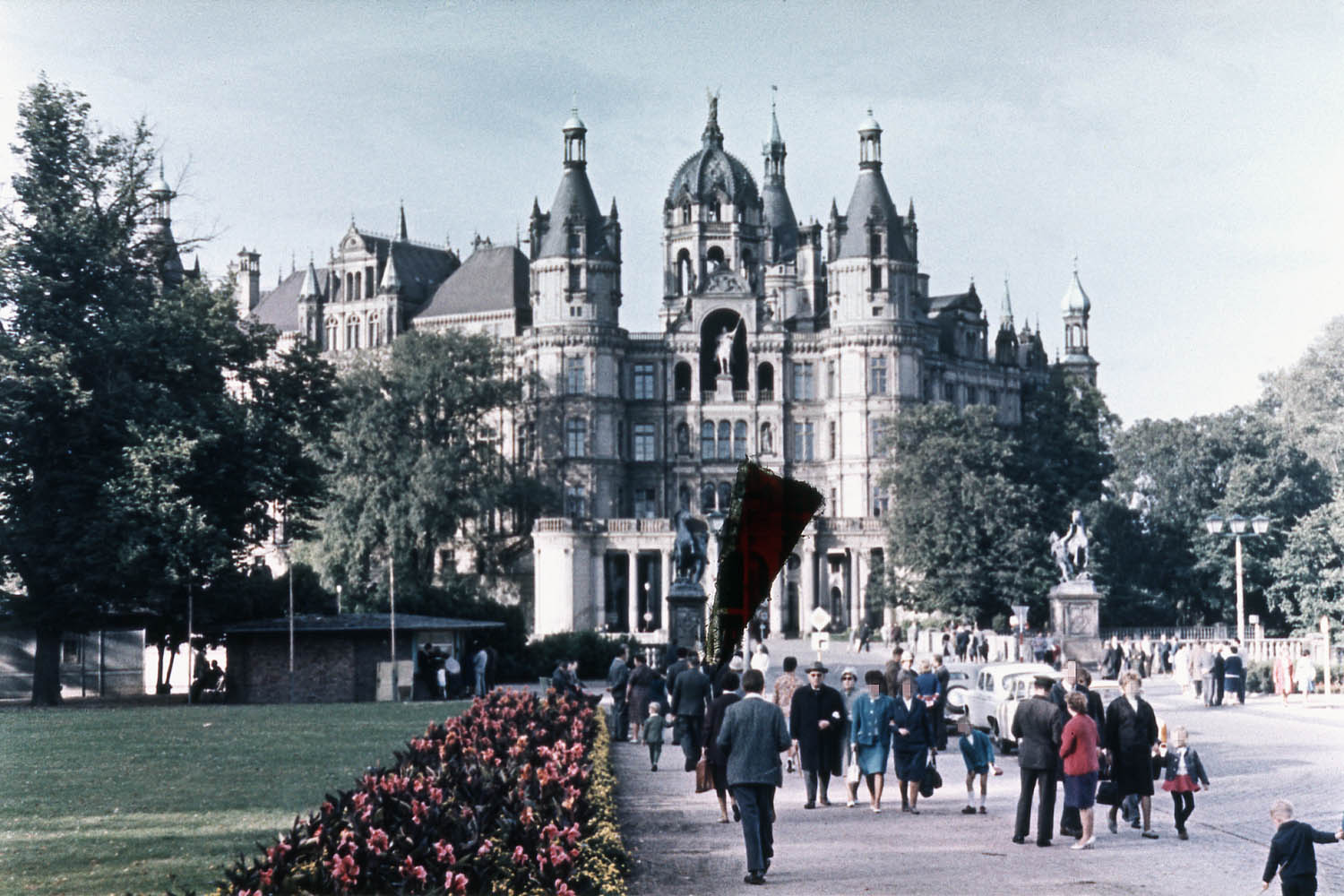 These images are taken from a film documenting the shadowing of an individual person. The subject is indicated with an arrow on some of the pictures. These arrows (three to four millimeters in size) are made out of plastic snippets that were skillfully pasted directly onto the slide. However, it is impossible to state with absolute certainty whether the arrows are actually pointing at the person being shadowed.