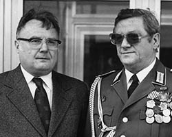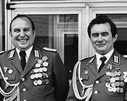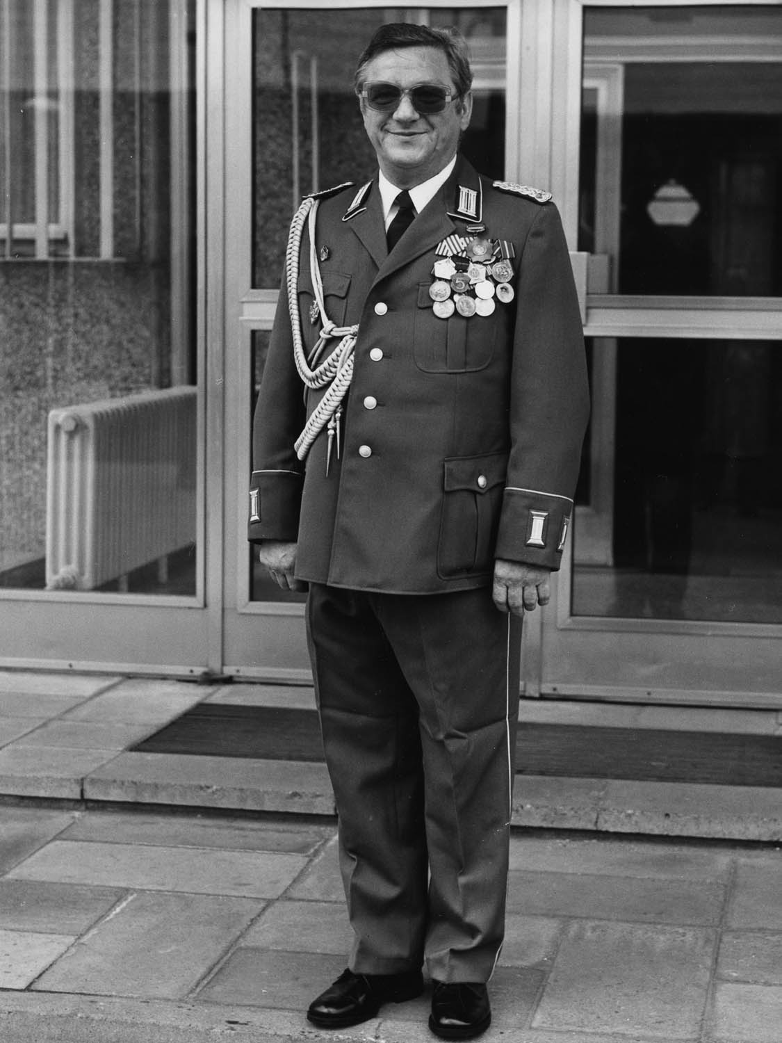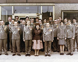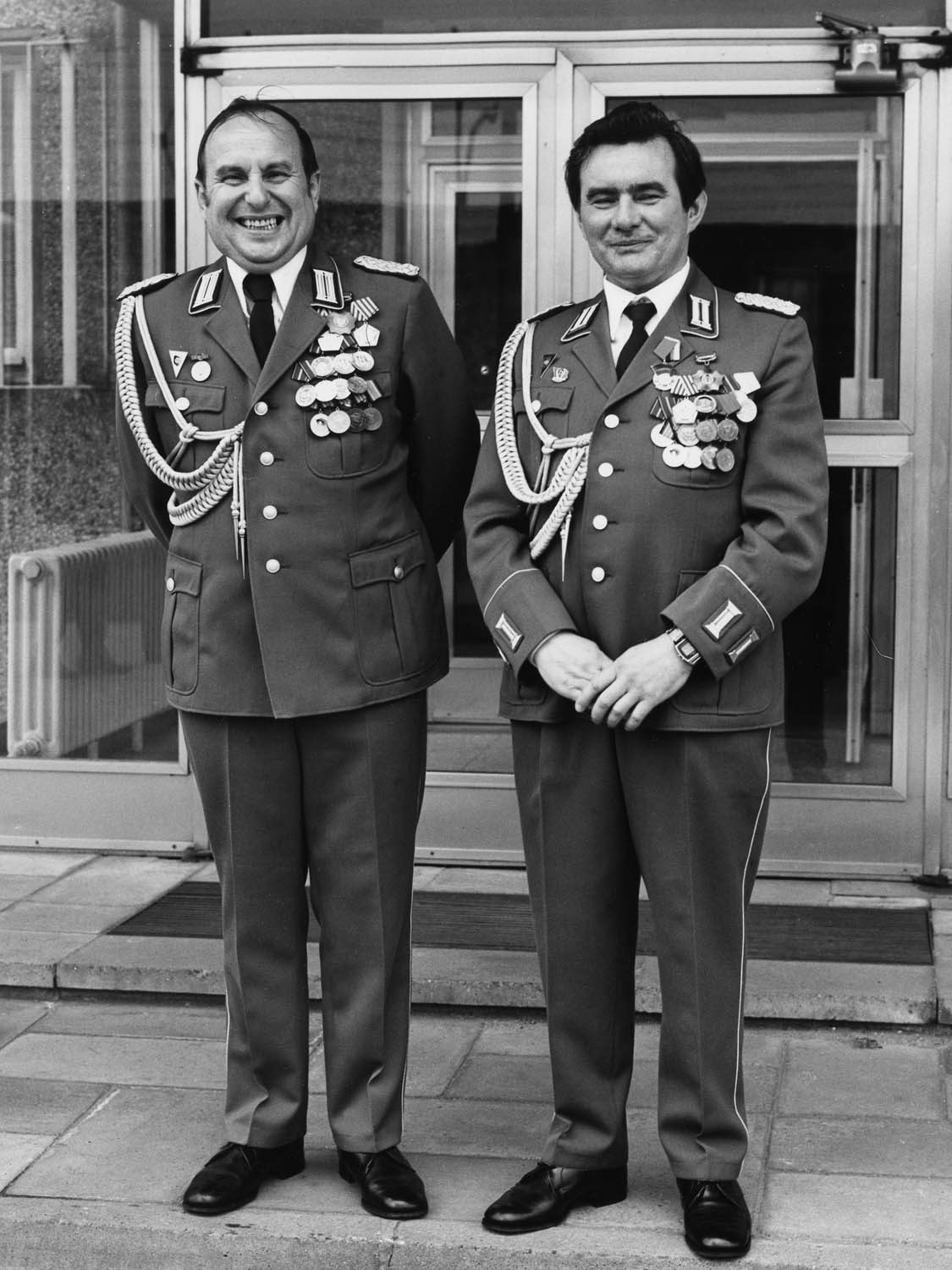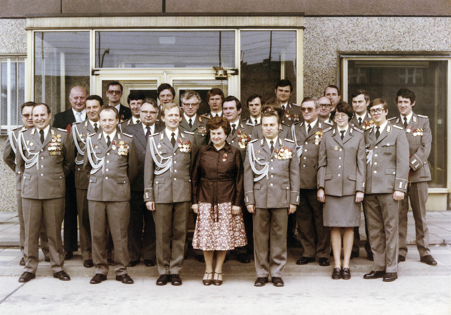 This is a group photograph of high-level functionaries taken in front of the headquarters of the Ministry for State Security in Berlin. Such pictures are a routine part of daily life in any profession, but in this case the pictures were archived and classified confidential.