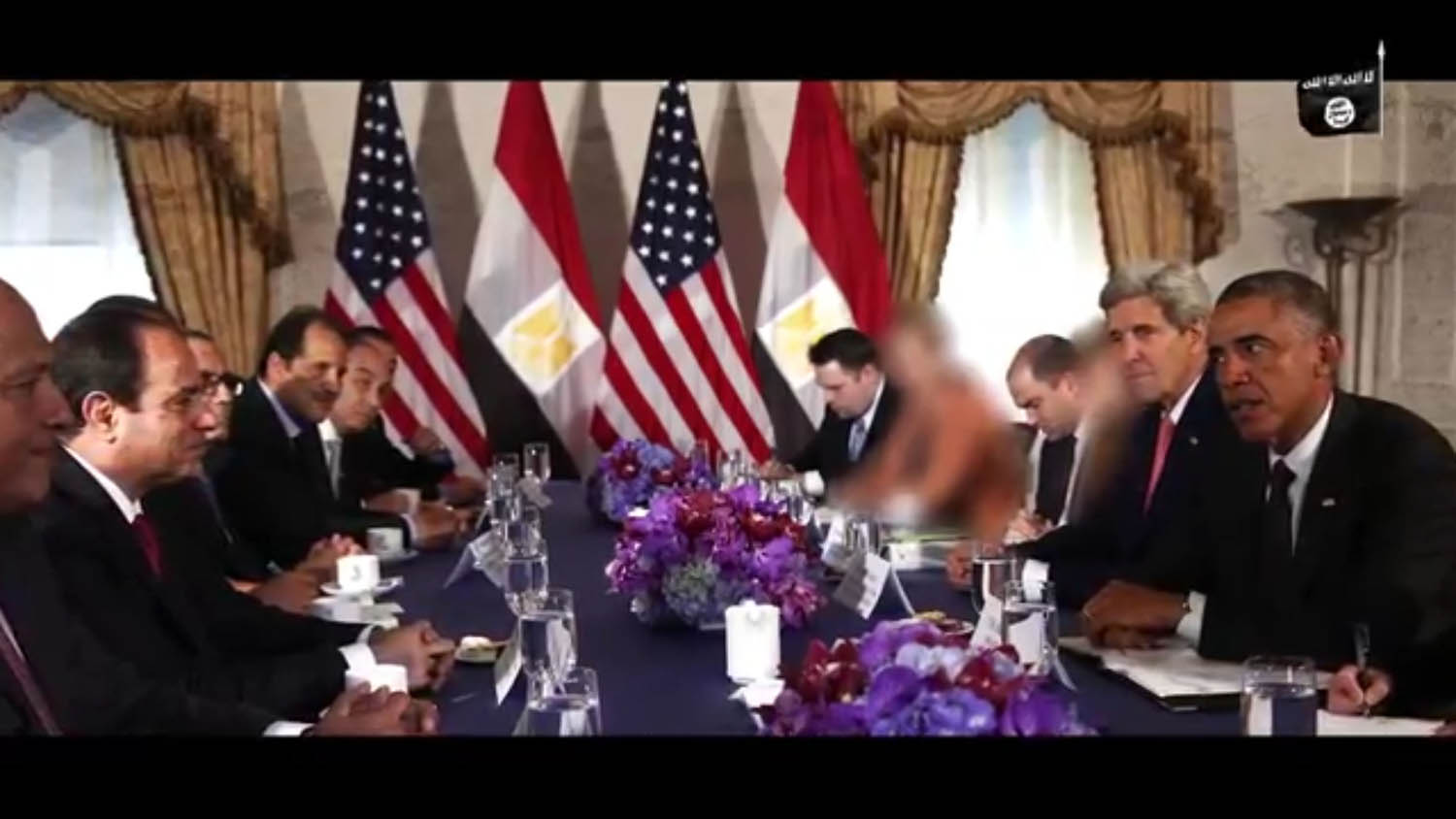 Especially when it comes to images from the political stage, I find it extremely tragic how easy it is for these groups to have women disappear from these images. International politics and the politics of the Arab World is still dominated by men. Very few women participate in these meetings who have to be removed by ISIS and Co afterwards. This might be a reason why Germany seems to be somewhat underrepresented in this form of propaganda. Angela Merkel is being called a bitch quite frequently, but her face cannot be shown.