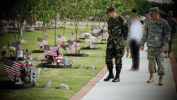 Quite symptomatic is the huge picture in the center of the wall. Here a huge number of men is driven to their mass shooting. Most of their clothing has been taken from them – maybe for economic reasons -, so they show their naked backs. This is then censored for the video, while the execution itself is shown in every bloody detail.
